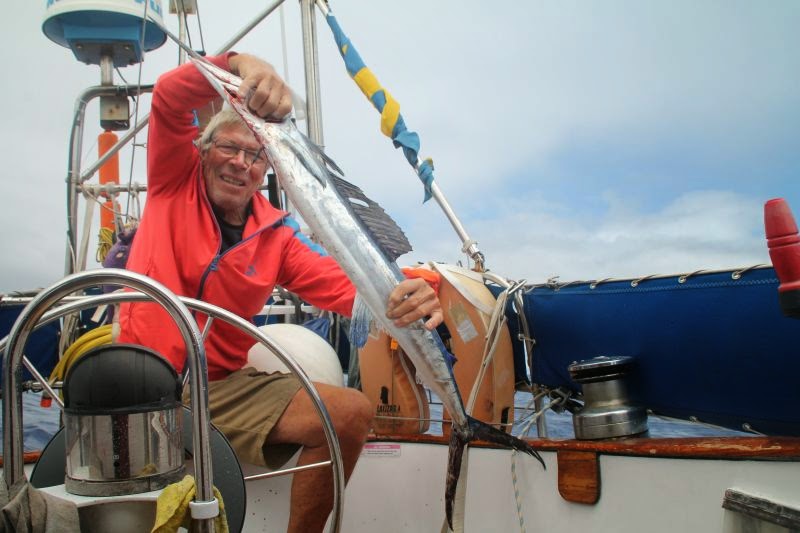 En stor överraskning var när vi efter en lång tid utan fiskelycka fick en stor men ändå inte för stor Blue Malin på kroken. Det var mat för en vecka. Katten blev överlycklig.